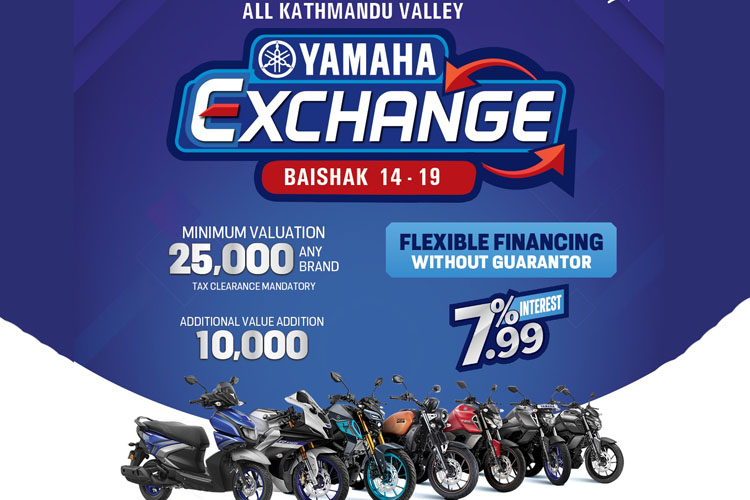 यामाहाको नेपालका लागि आधिकारिक बिक्रेता एमएडब्लू राइडस्ले काठमाडौं उपत्यकाका ग्राहकलाई लक्षित गर्दै एक्सचेन्ज अफर ल्याएको हो ।