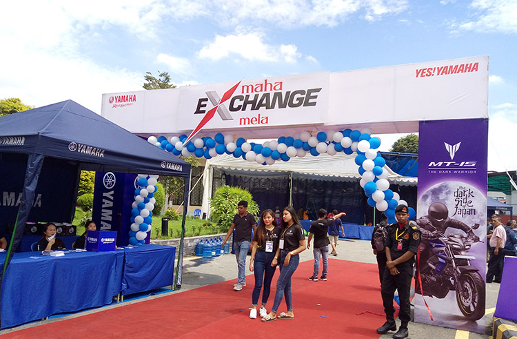 नेपालका लागि यामाहाको आधिकारीक वितरक एमएडब्लु इन्टरप्राइजेजले यामाहाको बाइक तथा स्कुटरहरूकाे महाएक्सचेन्ज मेला आज देखि राष्ट्रिय सभागृहमा सुरु गरेको छ । सो मेलाको उद्घाटन हिमाँसु सान् र यामाहा मिस नेपाल अनुष्का श्रेष्ठले संयुक्त रुपमा गरेका थिए ।